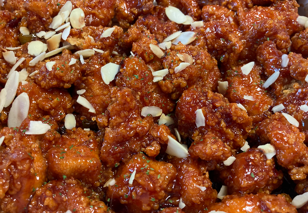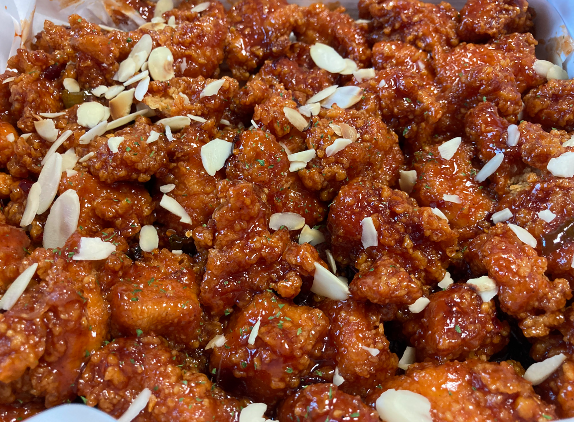 | 닭가슴살을 (거의 균일하게) 한입크기로 잘라놓음 닭가슴살이기 때문에 바삭한 식감을 만들기 위해 만석 특유의 튀김옷(kfc느낌?)이 입혀져 있음 |