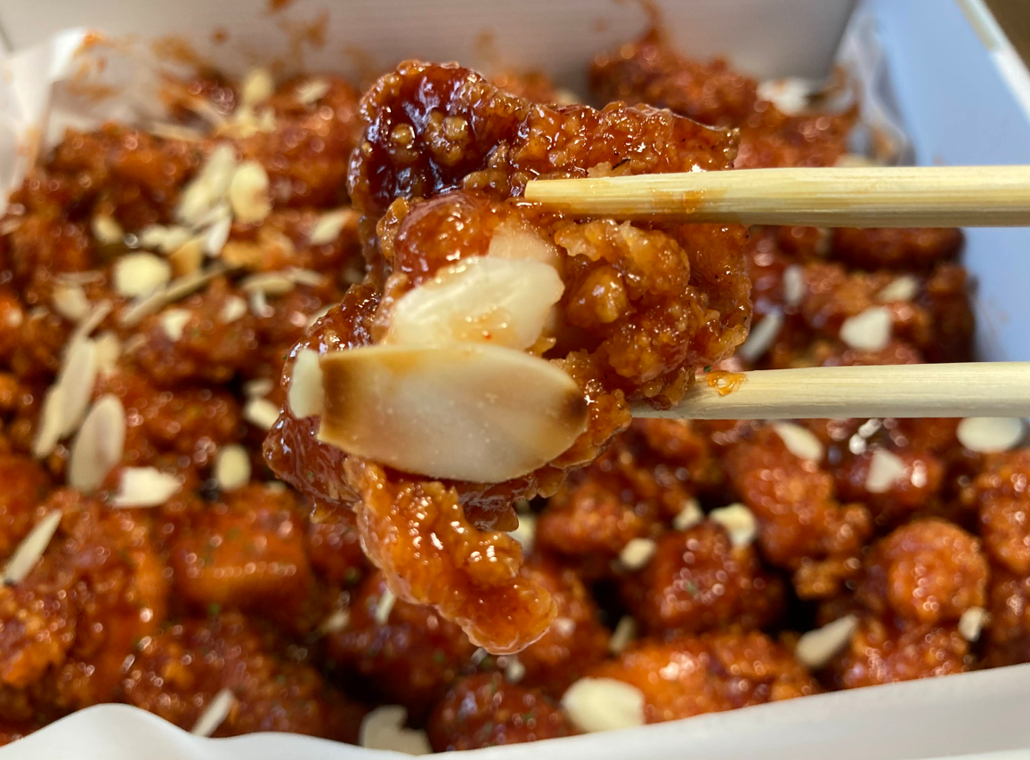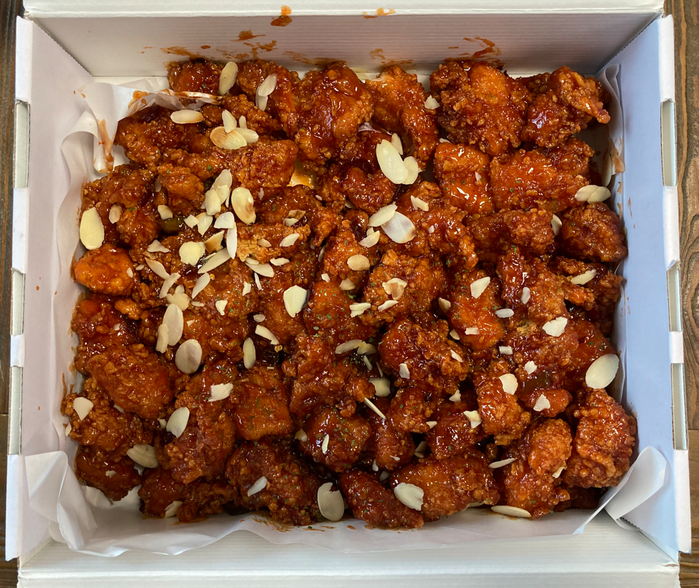 장점: 닭껍질 덕분에 퍽퍽함이 덜함 맥주랑 먹기 좋음, 양념이 덜 발려서 덜 달고 후라이드 맛도 남 단점: 닭껍질 때문인지 양이 다른 가게에 비해 적음 2/3정도. 양념이 적어서 닭강정인데 닭강정이 아닌느낌 |